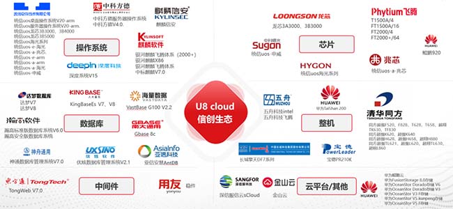 2018年,國家發(fā)布科技自主可控政策,鼓勵、支持國家自有核心產品全棧信創(chuàng)化工作,用友網絡科技股份有限公司積極響應國家號召,云ERP明星產品用友U8 cloud更是主動聯合包括芯片、整機、操作系統、中間件、數據庫、瀏覽器以及常用辦公軟件系統在內的眾多國內軟件龍頭企業(yè),努力為中國成長型企業(yè)打造適配全棧信創(chuàng)的企業(yè)數智化解決方案。截止日前,U8 cloud已經完成與30余家國內優(yōu)秀軟硬件企業(yè)100多個產品的兼容性適配以及互認證工作,成功支持了大量客戶云ERP系統的信創(chuàng)升級。