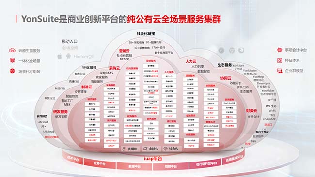 此外,用友近年更進(jìn)一步擴(kuò)充其生態(tài)服務(wù)。通過YonSuite的三中臺(tái)和三平臺(tái)策略,構(gòu)建了強(qiáng)大的生態(tài)體系,為開發(fā)者提供了開發(fā)認(rèn)證、定制平臺(tái)、社區(qū)、應(yīng)用市場和統(tǒng)一用戶中心等功能,滿足了國際化的生態(tài)場景需求,并在原生開發(fā)與集成開發(fā)中取得了不少成功案例。