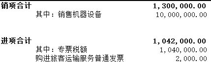 2024年9月,A公司實現(xiàn)銷售收入1000萬,稅率13%,銷項稅130萬。當(dāng)期取得進(jìn)項合計104.2萬,其中專用發(fā)票抵扣稅額104萬;普通發(fā)票(購進(jìn)旅客運(yùn)輸服務(wù)計算抵扣)抵扣0.2萬。