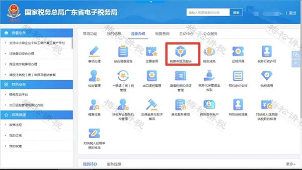 納稅人可登錄電子稅務(wù)局,點擊首頁左邊“常用功能—稅費申報及繳納”模塊,或點擊“我要辦稅—稅費申報及繳納”。