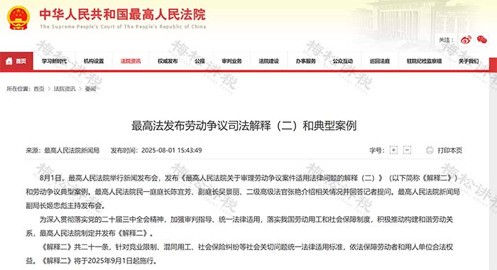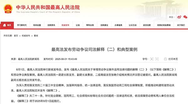 8月1日,最高法正式發(fā)布了《勞動(dòng)爭(zhēng)議司法解釋和典型案例(二)》