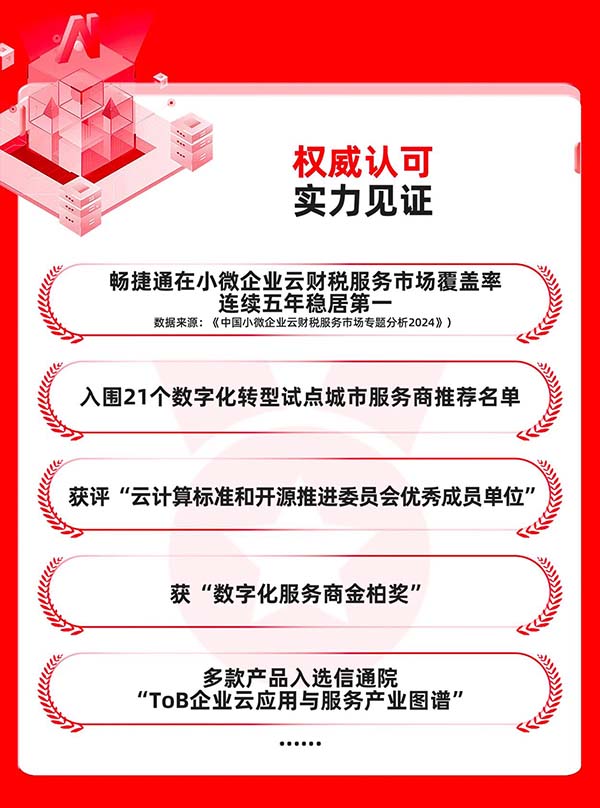 根據(jù)易觀發(fā)布的《中國(guó)小微企業(yè)云財(cái)稅服務(wù)市場(chǎng)專(zhuān)題分析2024》,暢捷通在小微企業(yè)云財(cái)稅服務(wù)市場(chǎng)覆蓋率連續(xù)五年穩(wěn)居第一,在用戶滿意度、產(chǎn)品性能及廠商綜合實(shí)力等核心維度的調(diào)研評(píng)測(cè)中均名列第一。公司還榮獲“云計(jì)算標(biāo)準(zhǔn)和開(kāi)源推進(jìn)委員會(huì)優(yōu)秀成員單位”稱號(hào)。此外,暢捷通入選了多項(xiàng)企業(yè)財(cái)稅服務(wù)創(chuàng)新排行榜,多款產(chǎn)品入選中國(guó)信通院“ToB企業(yè)云應(yīng)用與服務(wù)產(chǎn)業(yè)圖譜”。