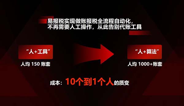 暢捷通直擊行業(yè)痛點:傳統代賬模式下,企業(yè)深陷價格戰(zhàn)激烈、同質化競爭、合規(guī)要求提升及客戶需求變化等。面對這些挑戰(zhàn),易報稅以“人+算法”的新模式,為代賬企業(yè)提供了開源節(jié)流的解決方案。