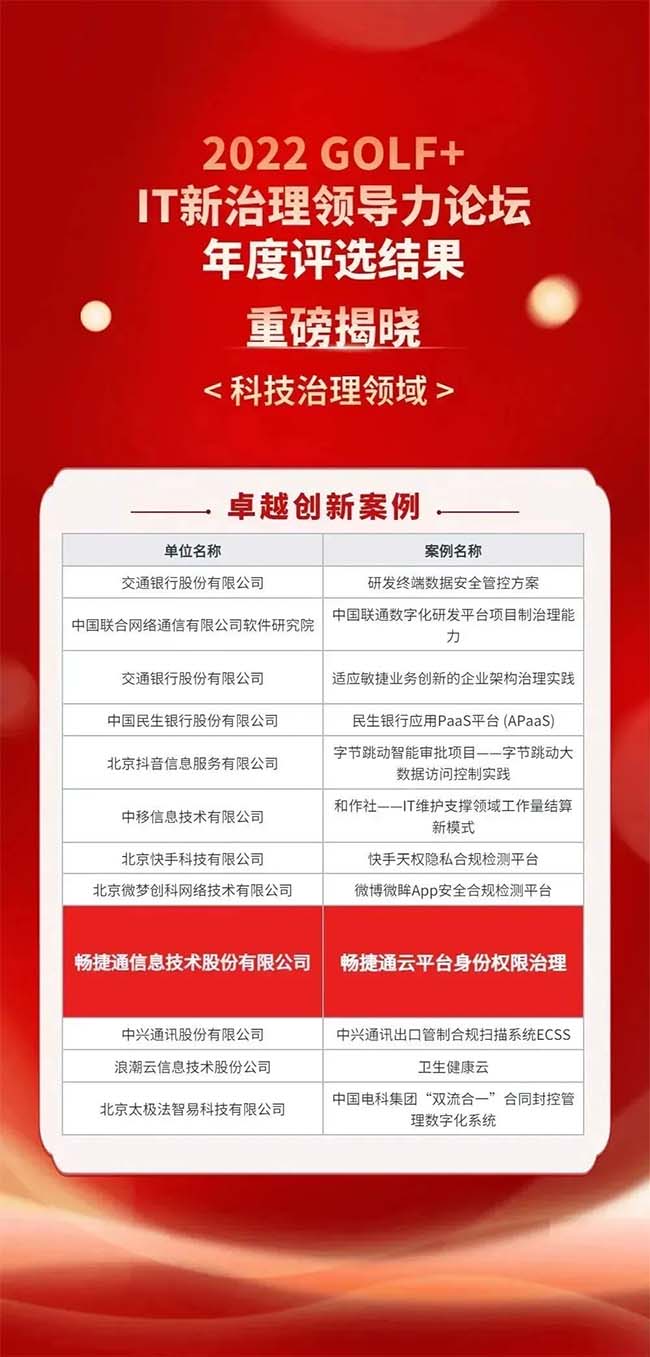 信通院主辦的“2022年GOLF+IT新治理領(lǐng)導(dǎo)力論壇年度評(píng)選活動(dòng)”旨在“強(qiáng)化科技支撐,激活治理效能”,幫助企業(yè)構(gòu)建科學(xué)的治理理念和運(yùn)行體系,被譽(yù)為IT治理領(lǐng)域風(fēng)向標(biāo)。