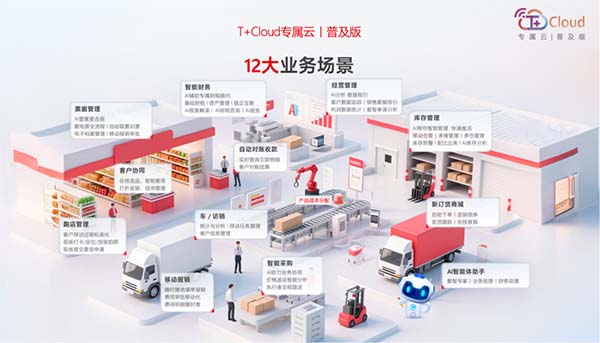 同時(shí),AI驅(qū)動(dòng)下,業(yè)財(cái)融合正從傳統(tǒng)的流程對接升級(jí)為“數(shù)據(jù)同源、規(guī)則共通、決策共生”的智能協(xié)同模式。T+Cloud專屬云普及版通過AI引擎重構(gòu)業(yè)務(wù)流程,讓12大智能場景成為業(yè)財(cái)數(shù)據(jù)的“雙向轉(zhuǎn)化樞紐”。