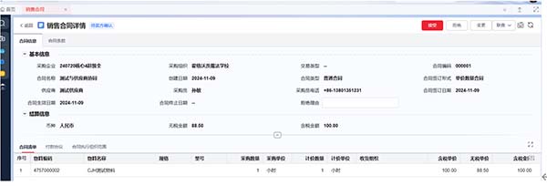 4、采購合同確認(rèn)完成,采購合同就又回到了待采購商確認(rèn)的狀態(tài),采購商可以提交內(nèi)部審批流,如果沒有配置審批流或者審批完 成采購合同就可以生效了。生效后供應(yīng)商就收到審批通過的銷售合同。
